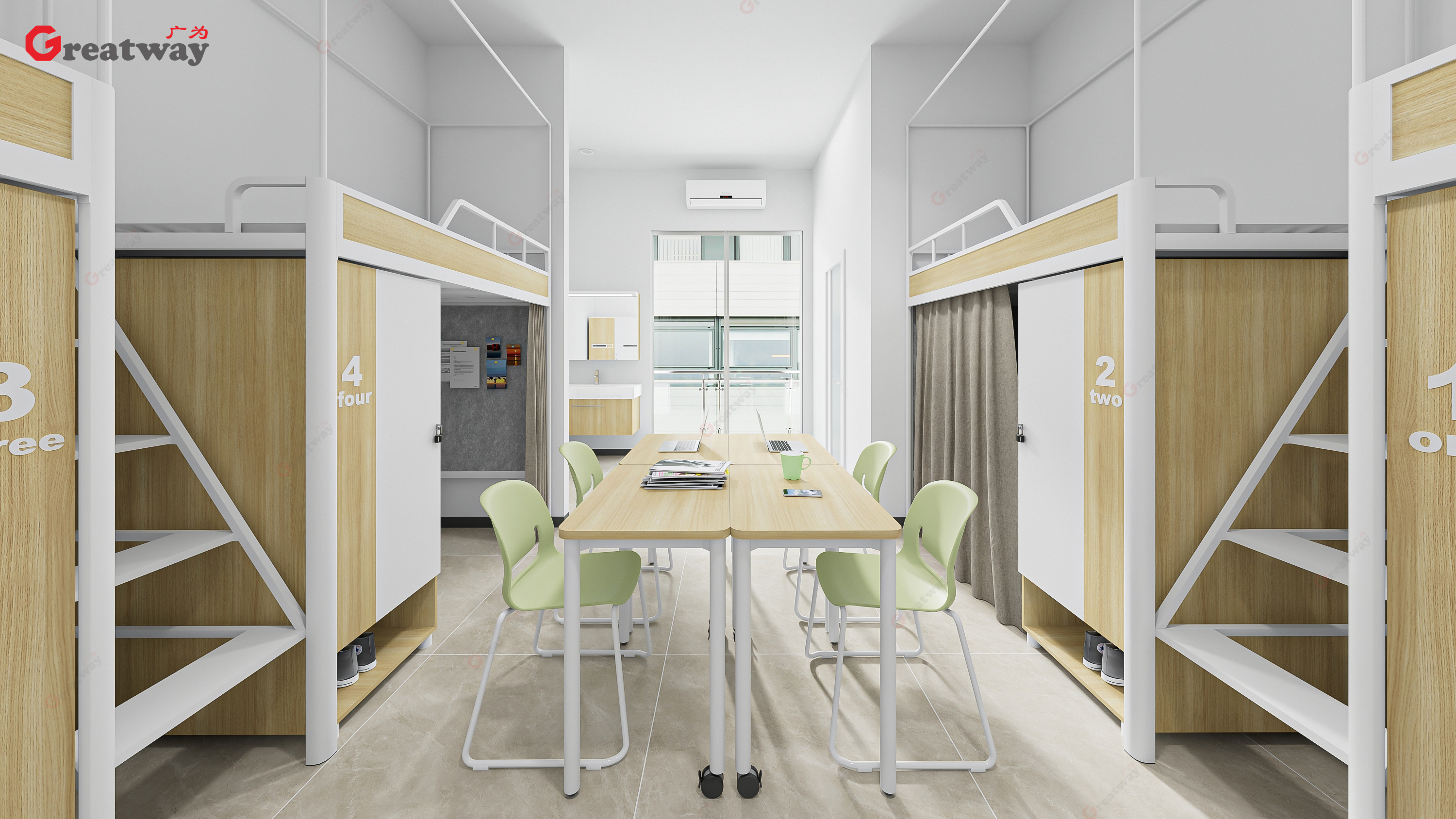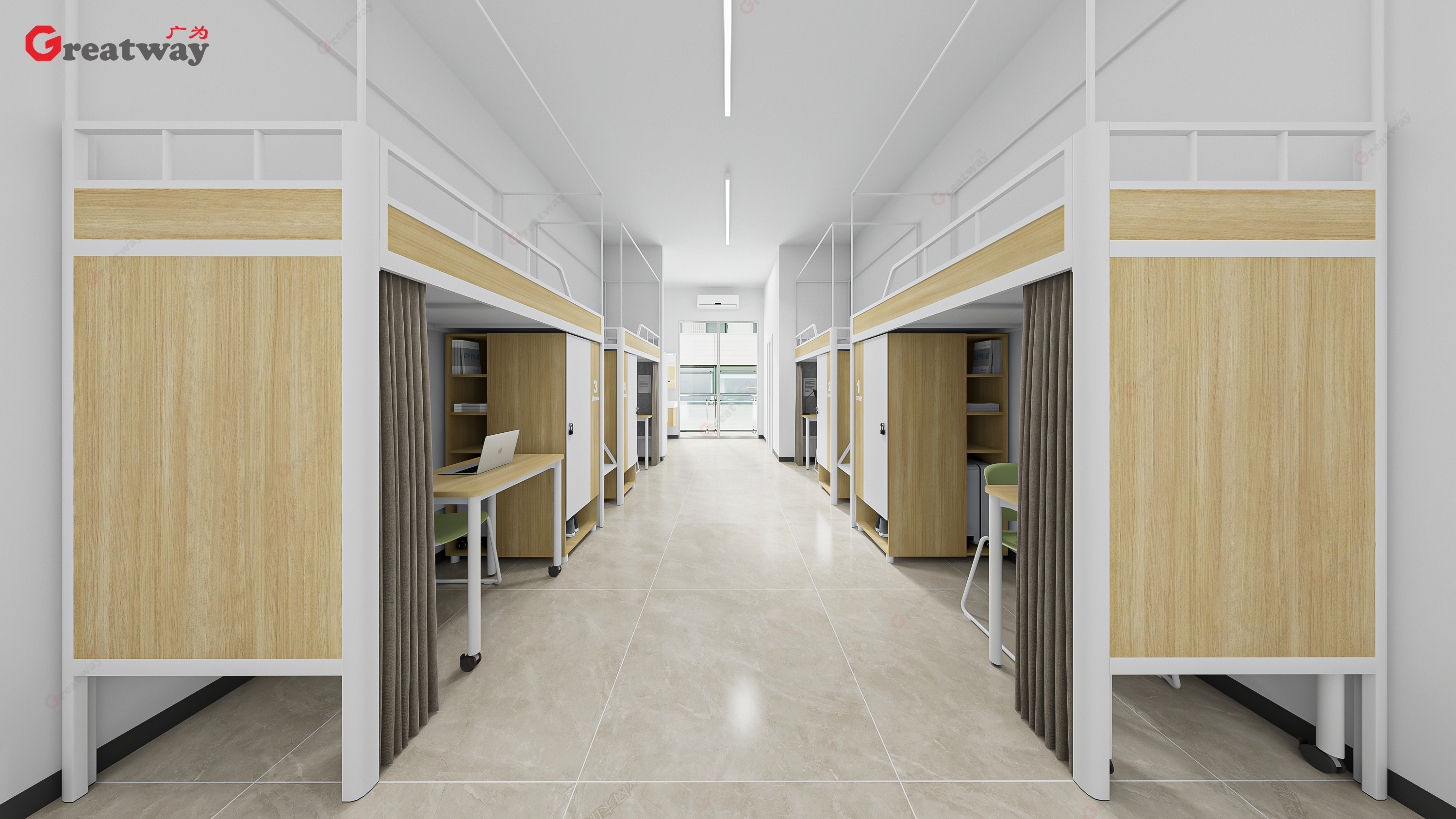 專為有限空間精心打造,巧妙取消了傳統下鋪書桌的設置,轉而采用床位與儲物柜的完美結合設計。不僅最大化地提升了空間利用率,還完美滿足了住宿人員的儲物需求。無論是書籍、衣物還是個人物品,都能得到妥善安置,讓宿舍空間始終保持整潔有序。同時,我們提供個性化定制服務,確保每一款公寓床都能完美融入生活場景。